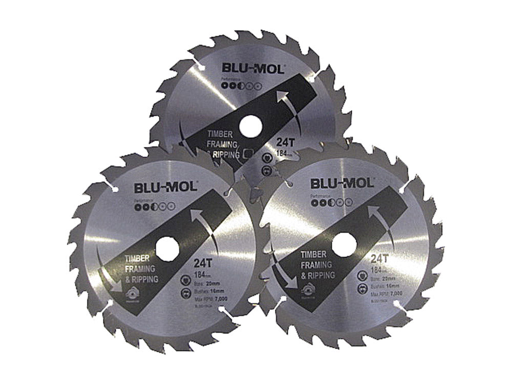 BLU-MOL PROFESSIONAL CIRCULAR SAW BLADE 184mm x 24T (3 PACK)