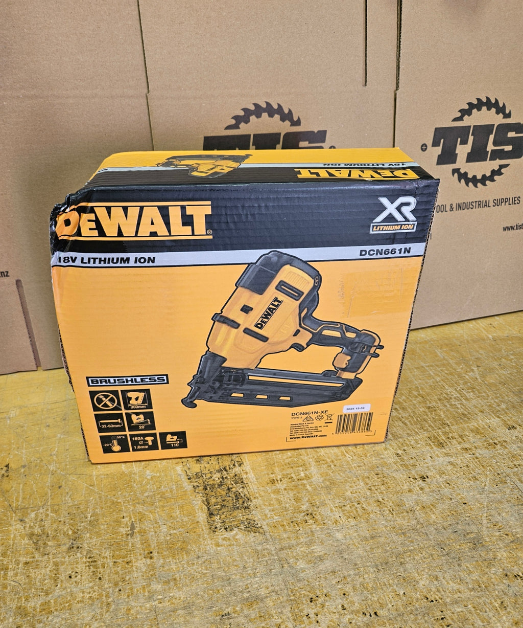 Genuine Dewalt 18V XR Li-Ion BRUSHLESS 16Ga Finishing Nailer Bare DAMAGED box (Sequential Only) - The DCN661 Brushless 16 Ga finish nailer is designed to meet the highest demands of construction professionals. It is the essential tool for the precise installation of all interior decorative trim such as skirting, architraves and coving.