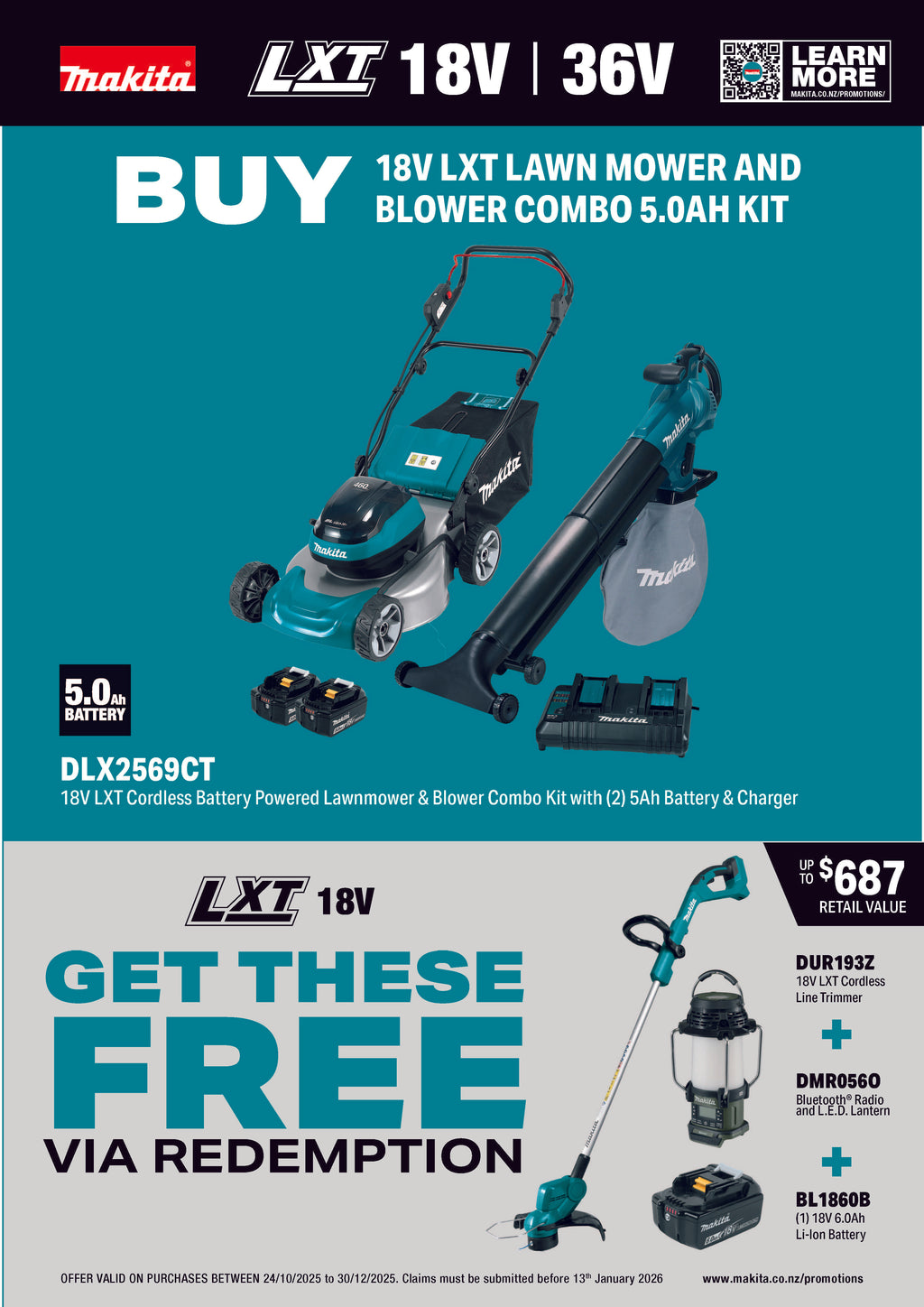 DLX2569CT | Makita 18V LXT Lawnmower / Blower (5.0Ah) Kit