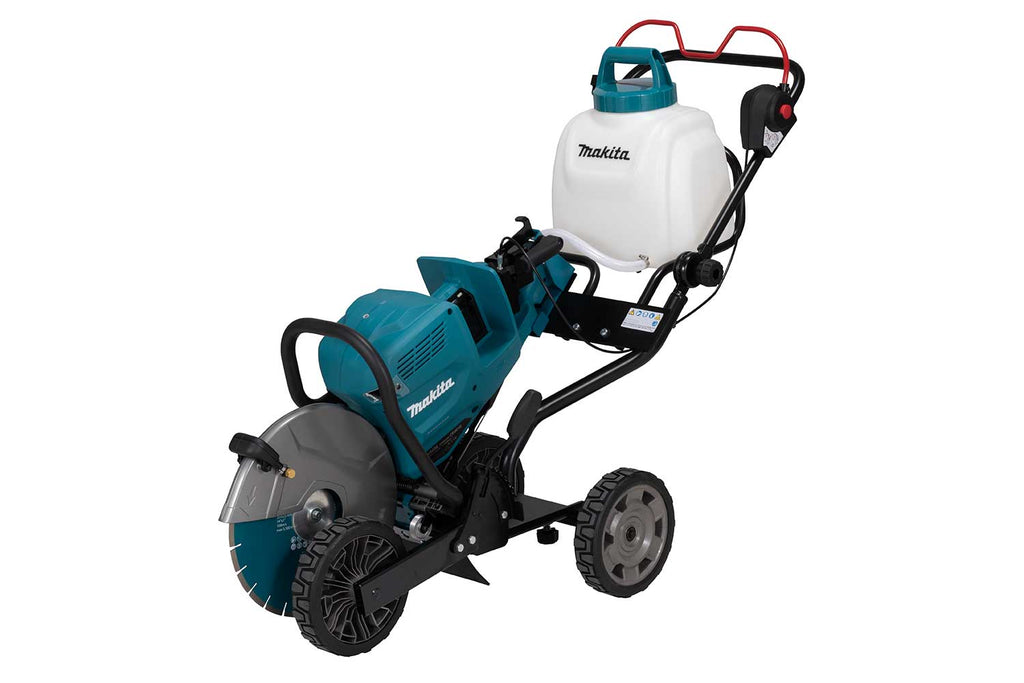 Engineered for the Makita XGT 80V Power Cutter CE001G, this tool seamlessly integrates with the trolley, operated by the handlebar-mounted lever