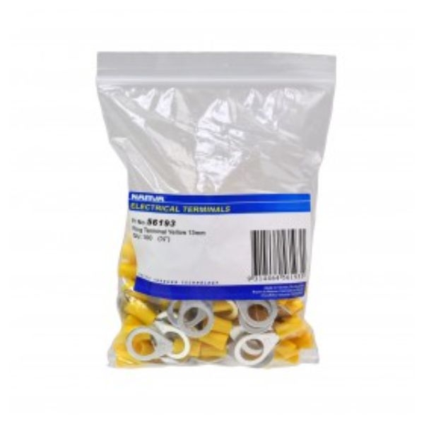 Description: Narva's extensive range of spade and ring terminals are available in a variety of wire and tab sizes conveniently colour coded to make selection easy. Each features a flared vinyl insultor for easy wire insertion.