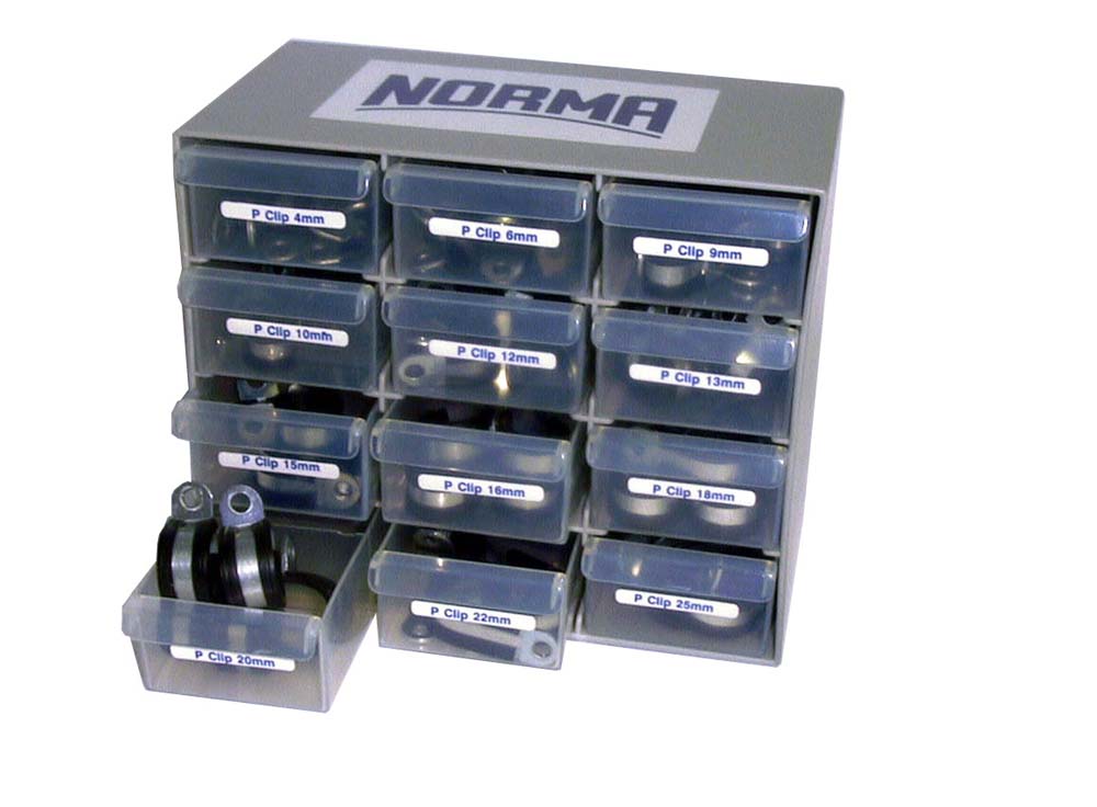 N-RSGU90 NORMA 90PCE RSGU PIPE RETAINING CLIP ASSORTMENT IN 12 DRAWER CABINET