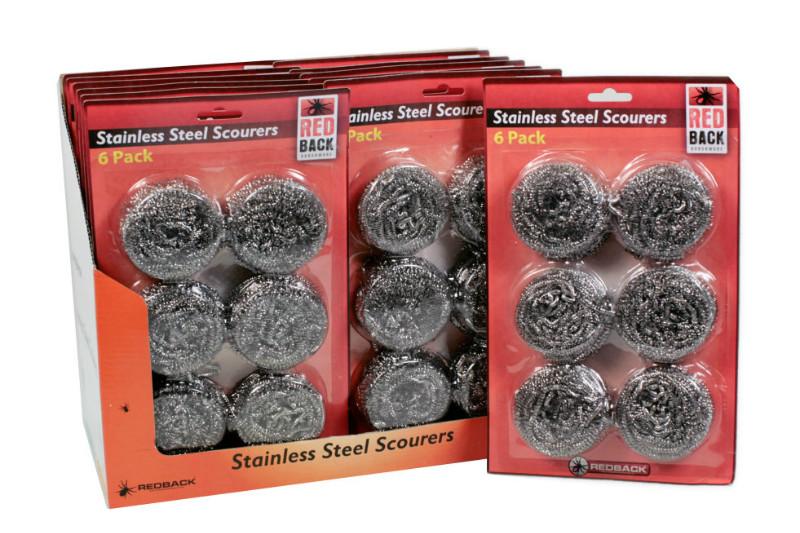 R32371 Stainless Steel Scourers 6-pce Redback - These stainless steel scouters are great all purpose cleaners for pots, pans, grills, tools, hotplates and barbecues. Comes in a handy 6 pack. Each scourer is 60 diameter x 25mm high.